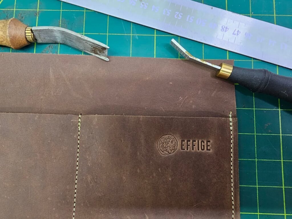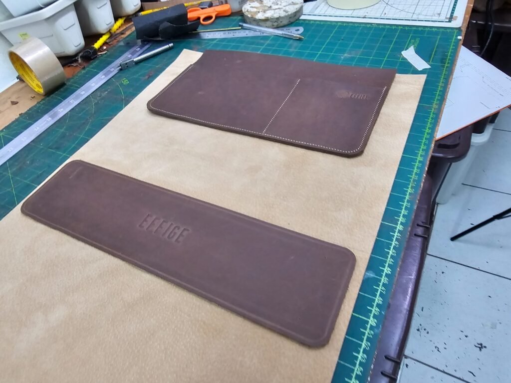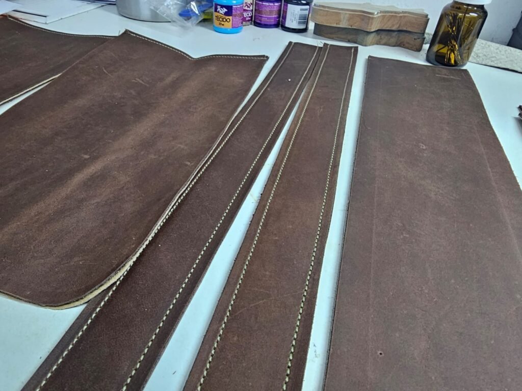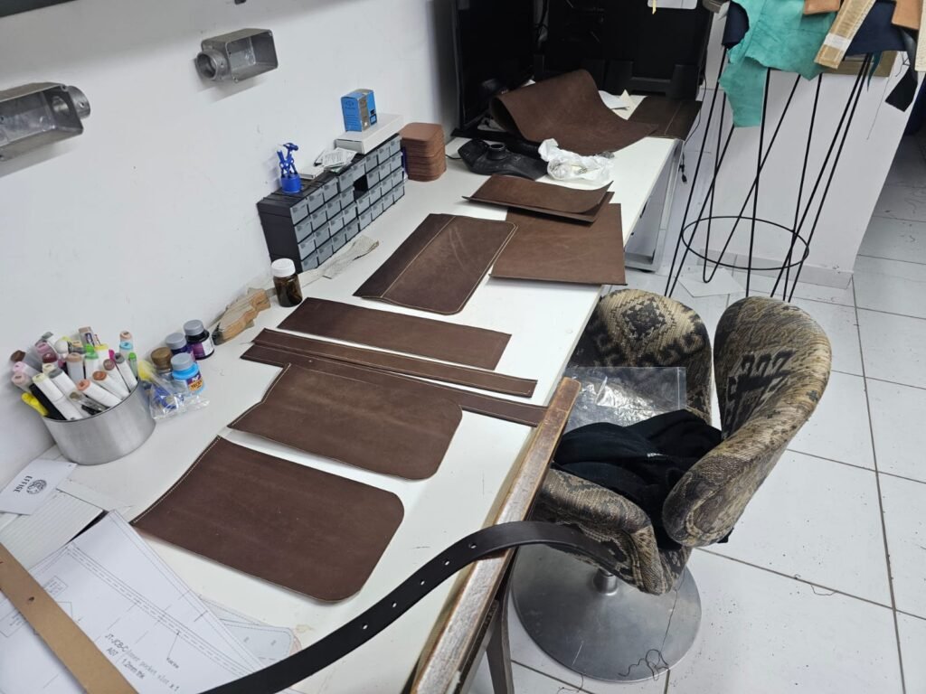 O primeiro passo é a escolha do couro, neste caso, uma Vaqueta tipo Rocket marrom macio, resistente e flexível.