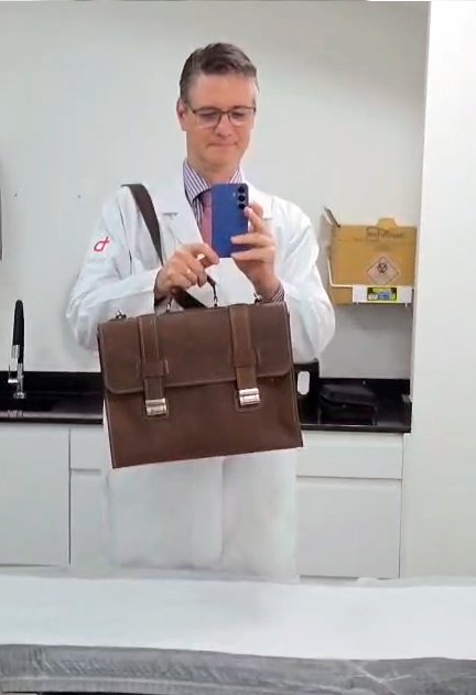O modelo “Messenger Bag” foi escolhido pela praticidade beleza e espaço interno enorme que ela proporciona e não houve dificuldade para esta etapa, já que o médico deve ter sempre aparência impecável junto aos seus Pacientes.